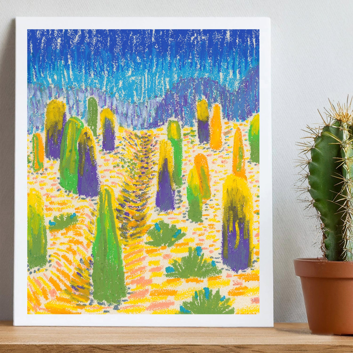 Original acrylic and mixed media works made into decorative arts on paper and other goods. As an artist for over 20 years, I am inspired by the southwest and PNW landscapes, the human figure and society. My artworks have a midcentury color aesthetic mixed with a punch of neon. They are colorful, bold and impactful.